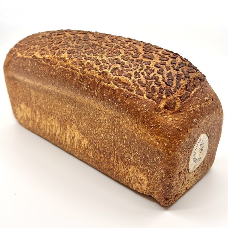 Een volkoren brood op basis van tarwemeel zonder zaadjes of pitjes. Bovenop een extra lekker krokant tijgerkorstje.